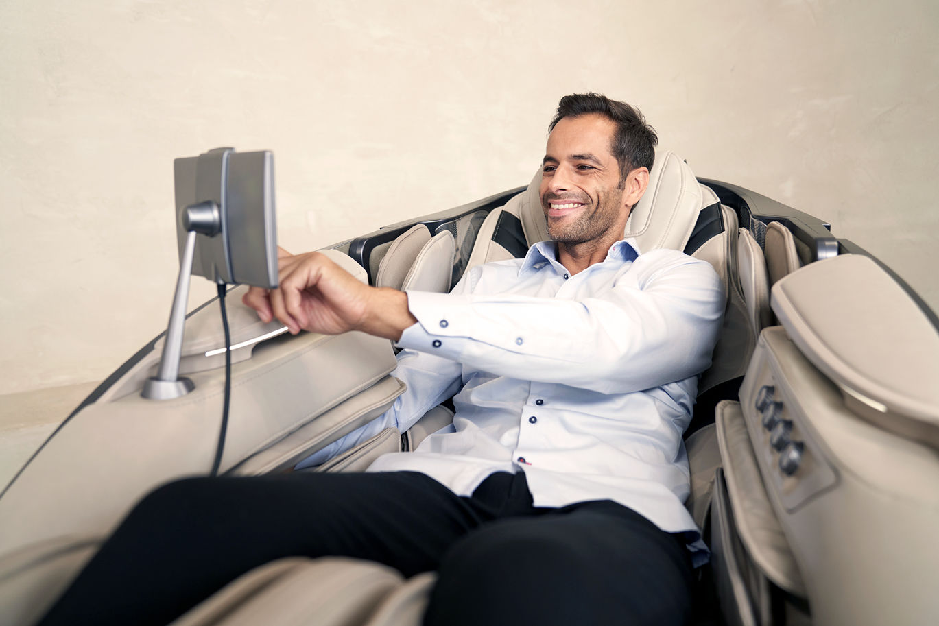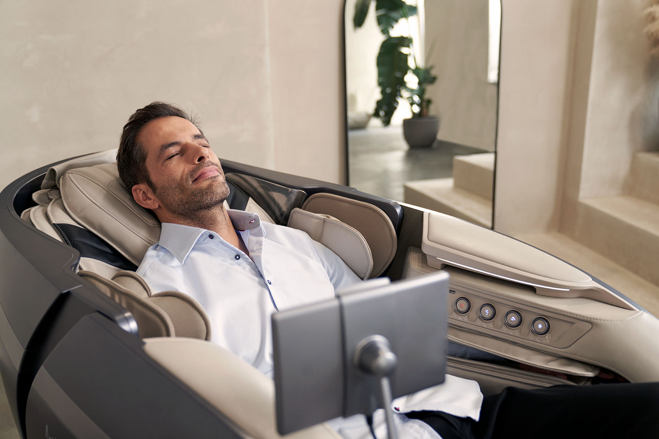 2개의 마사지 모터(총 8개의 마사지 롤러)가 압도적인 마사지 경험을 선사합니다. 부드럽고 강력한 마사지를 제공하며 바쁜 일상 속에서 빠르게 에너지를 충전해 줍니다.